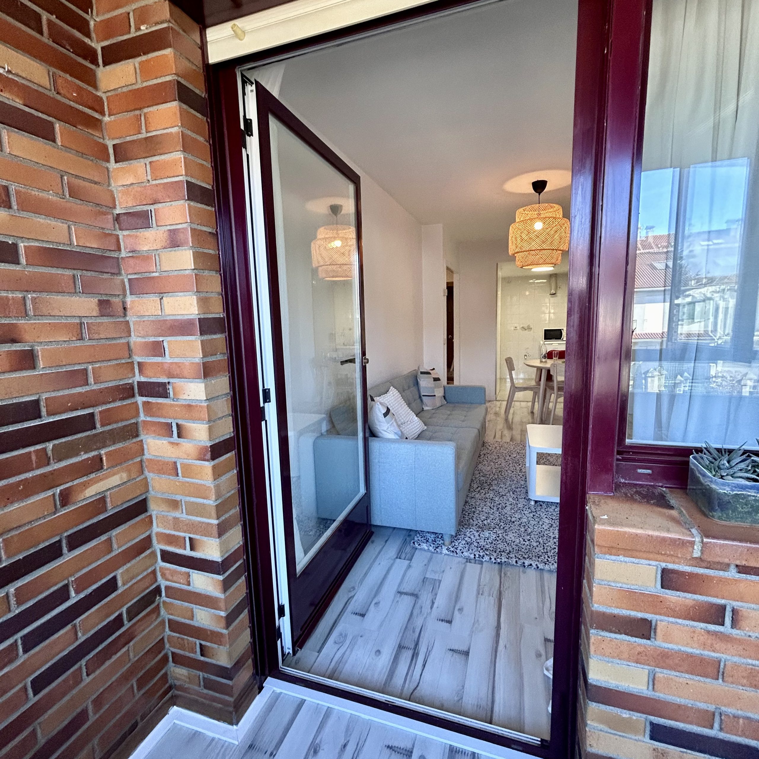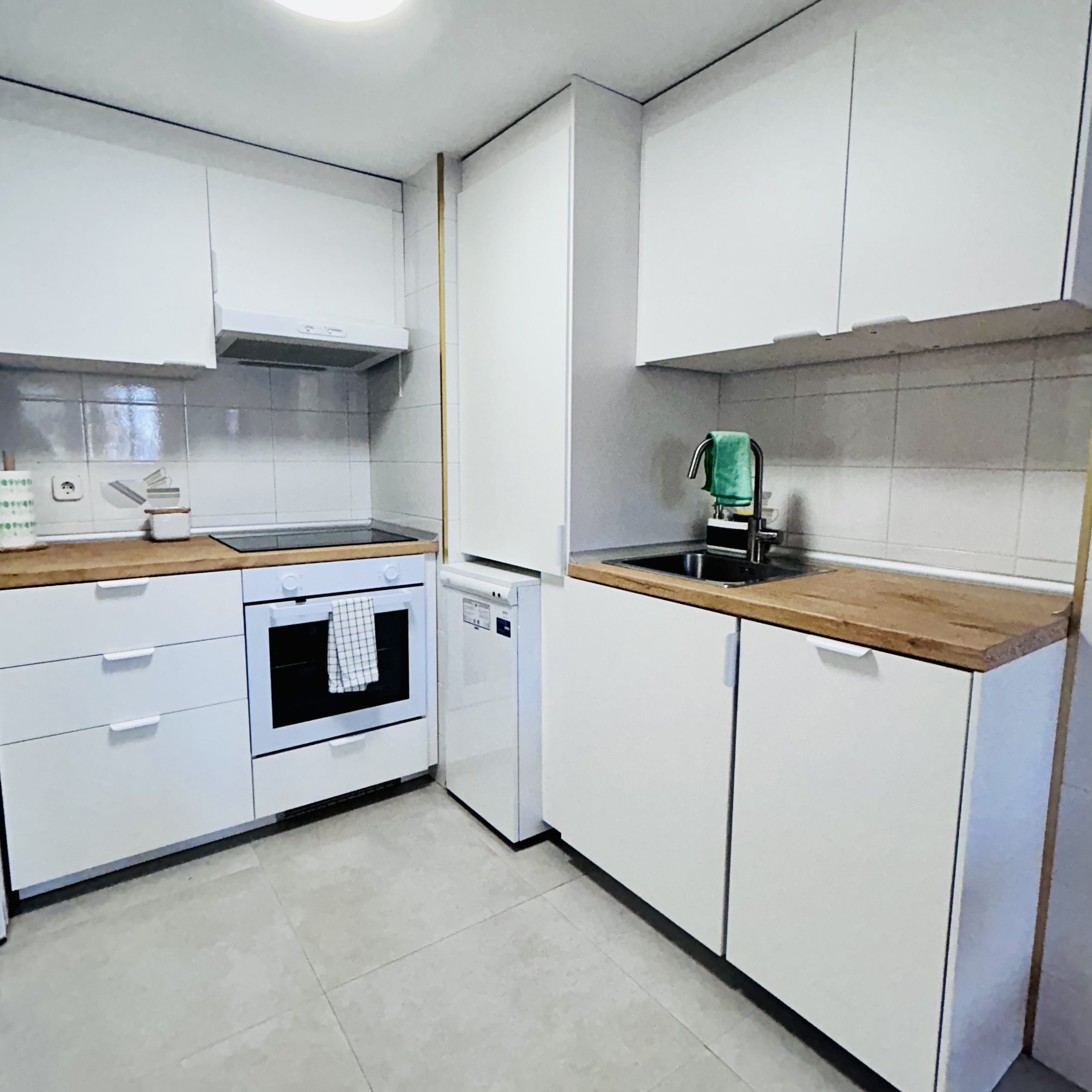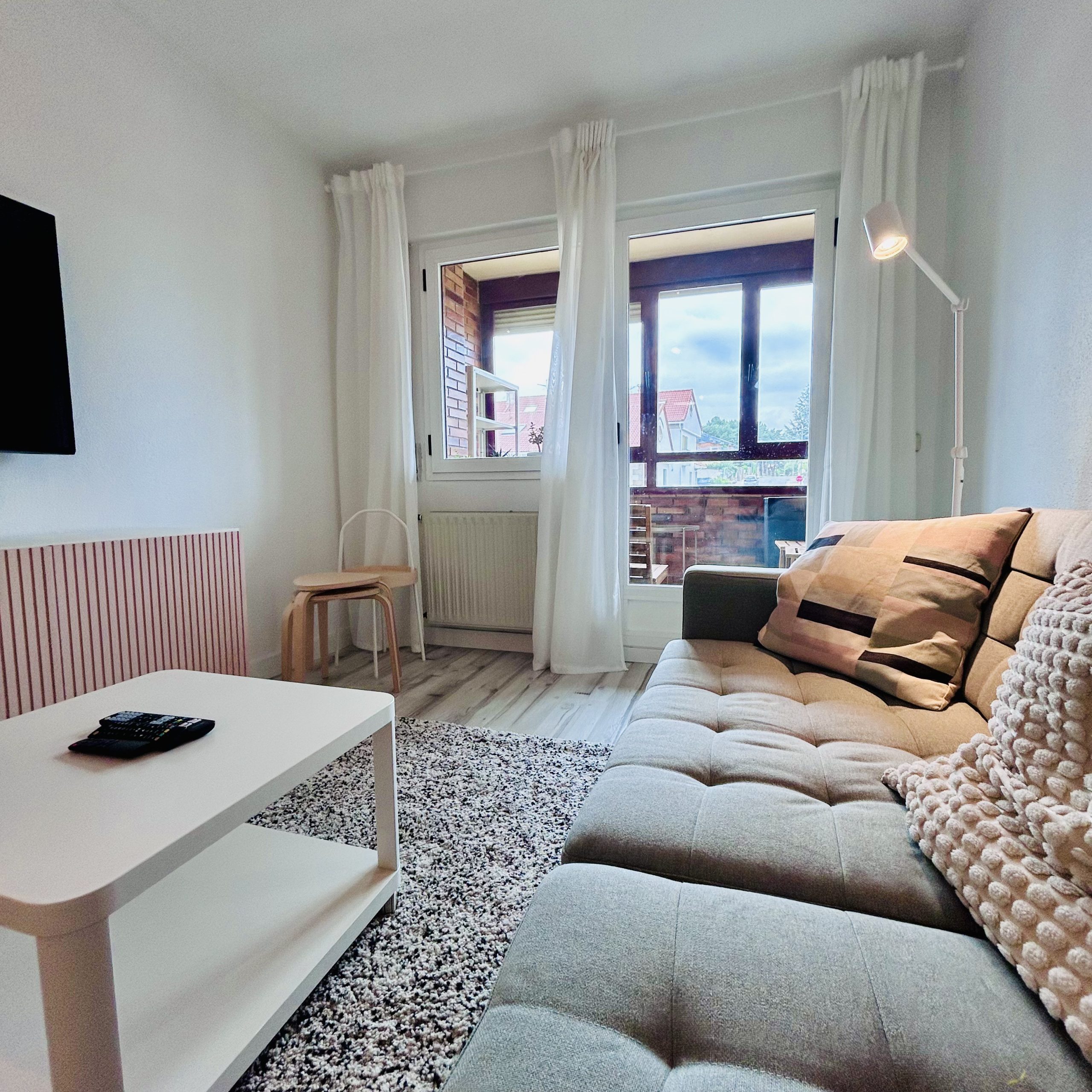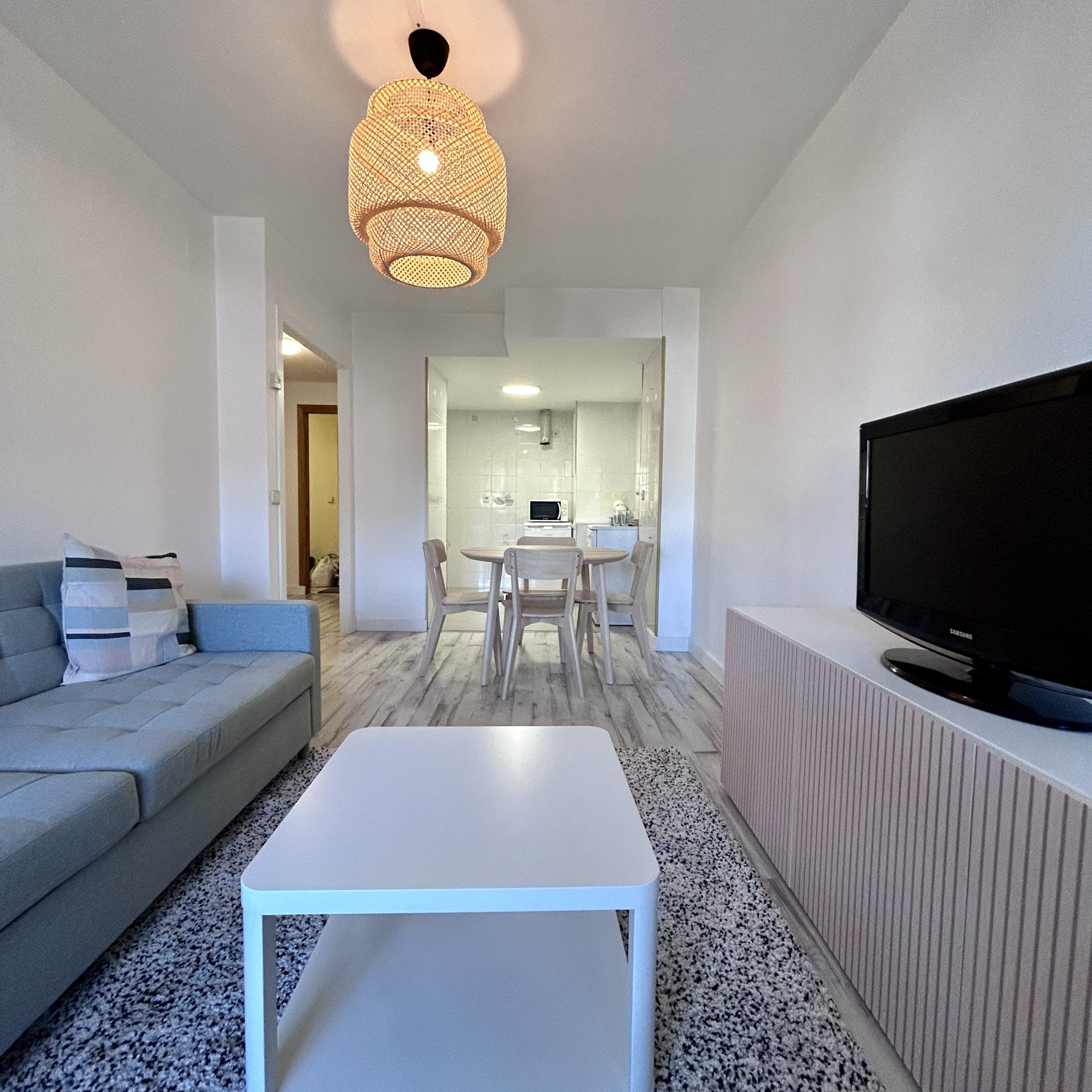 Salón con sofá cama-cocina equipada- 1 habitación doble, 1 baño y 1 terraza y ascensor, 60 m2.
