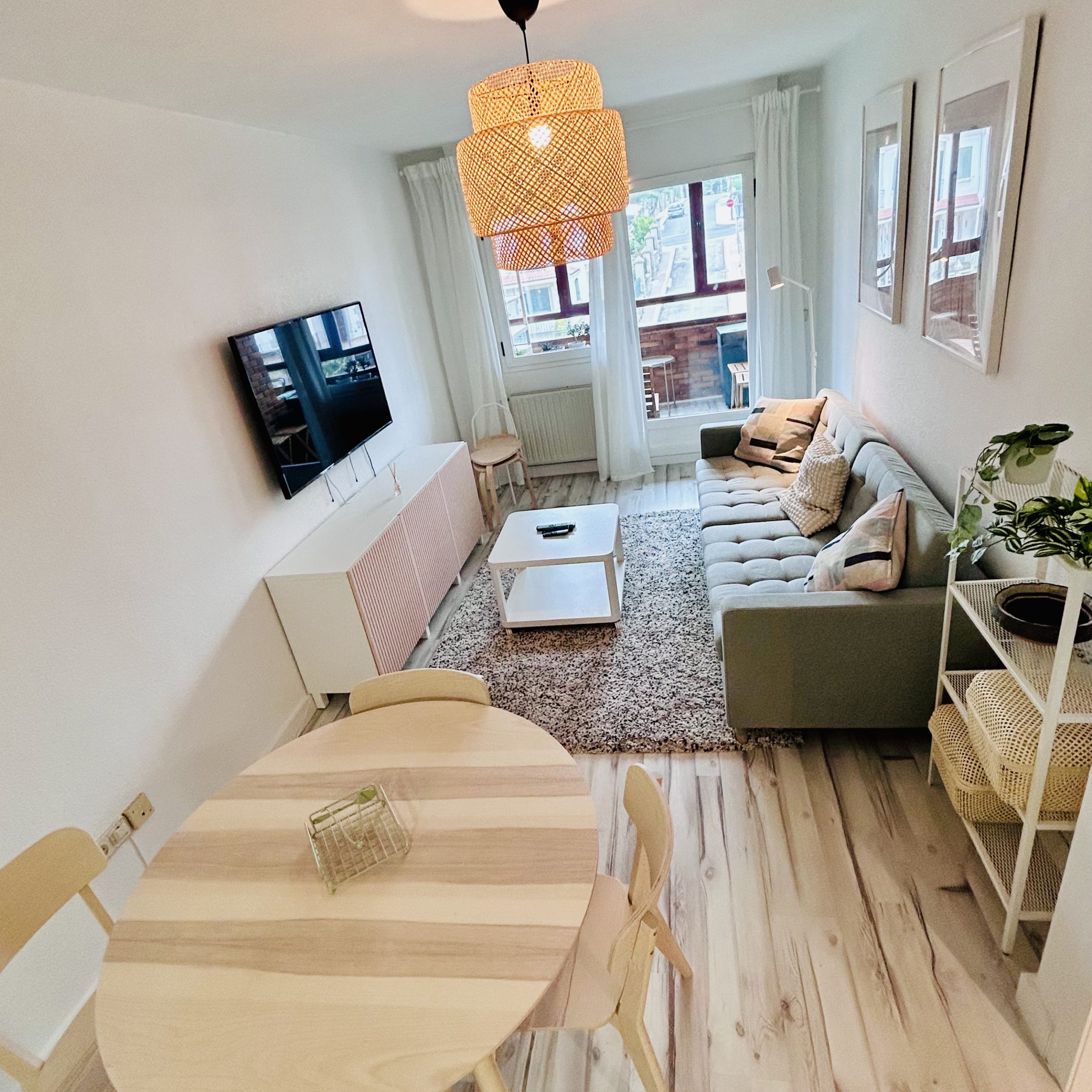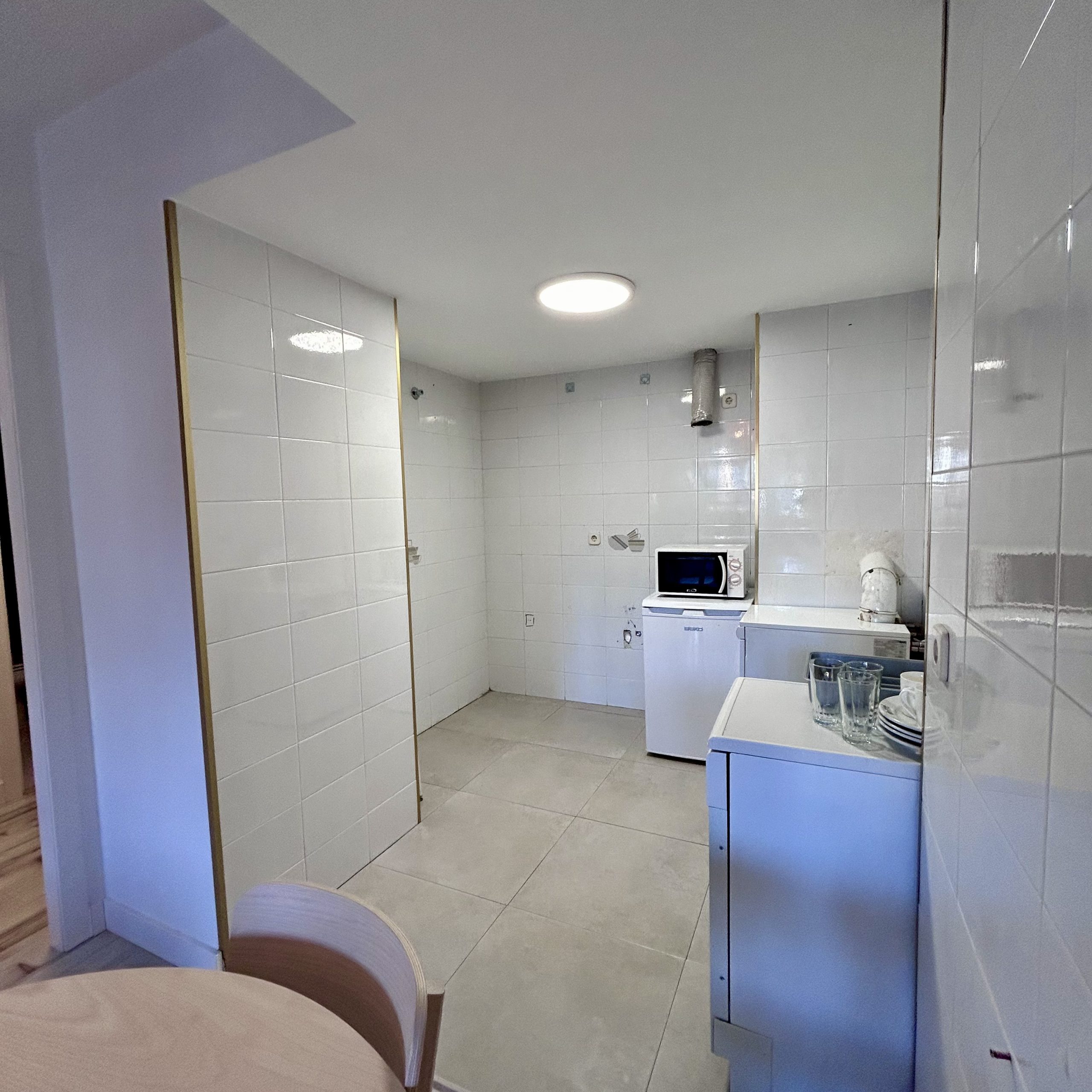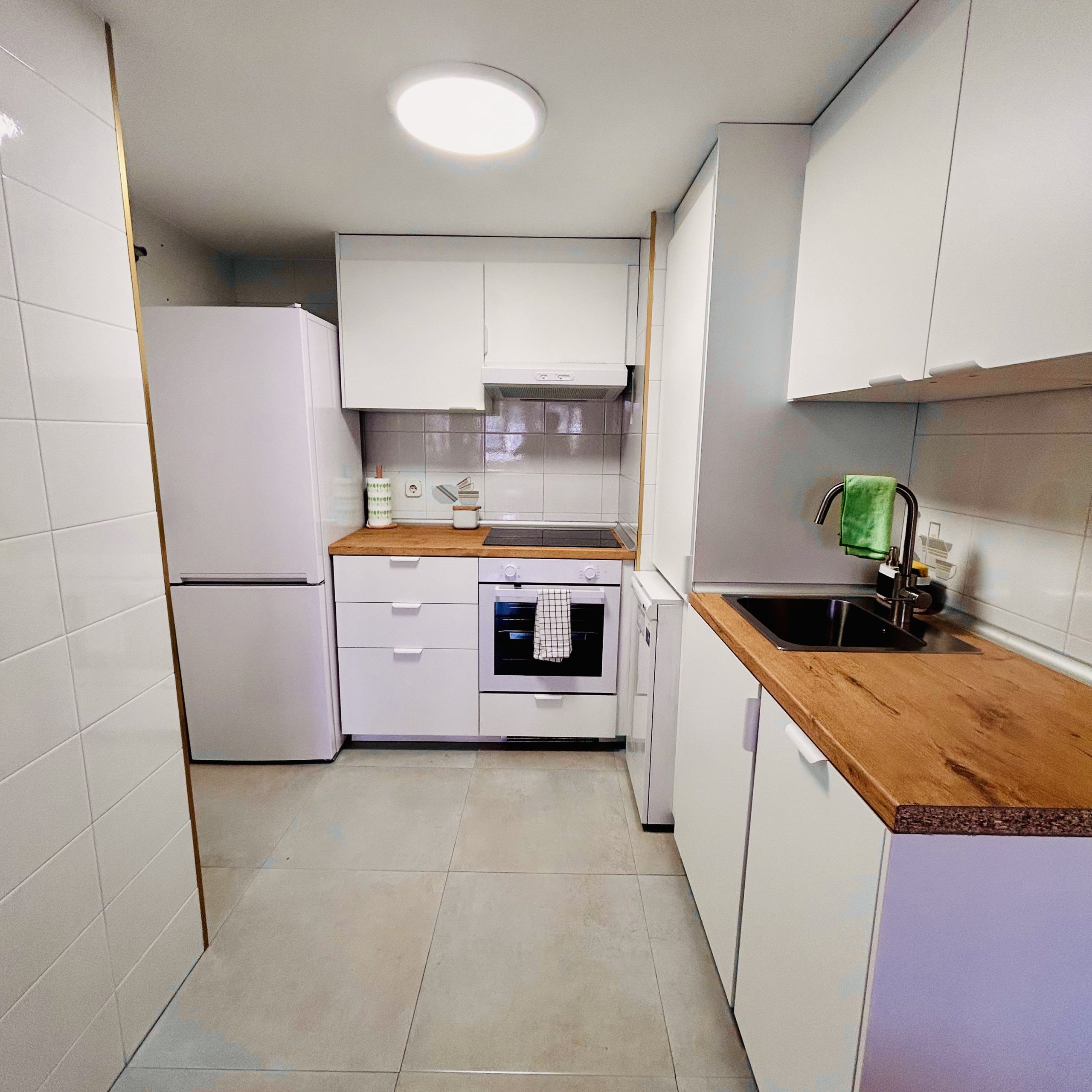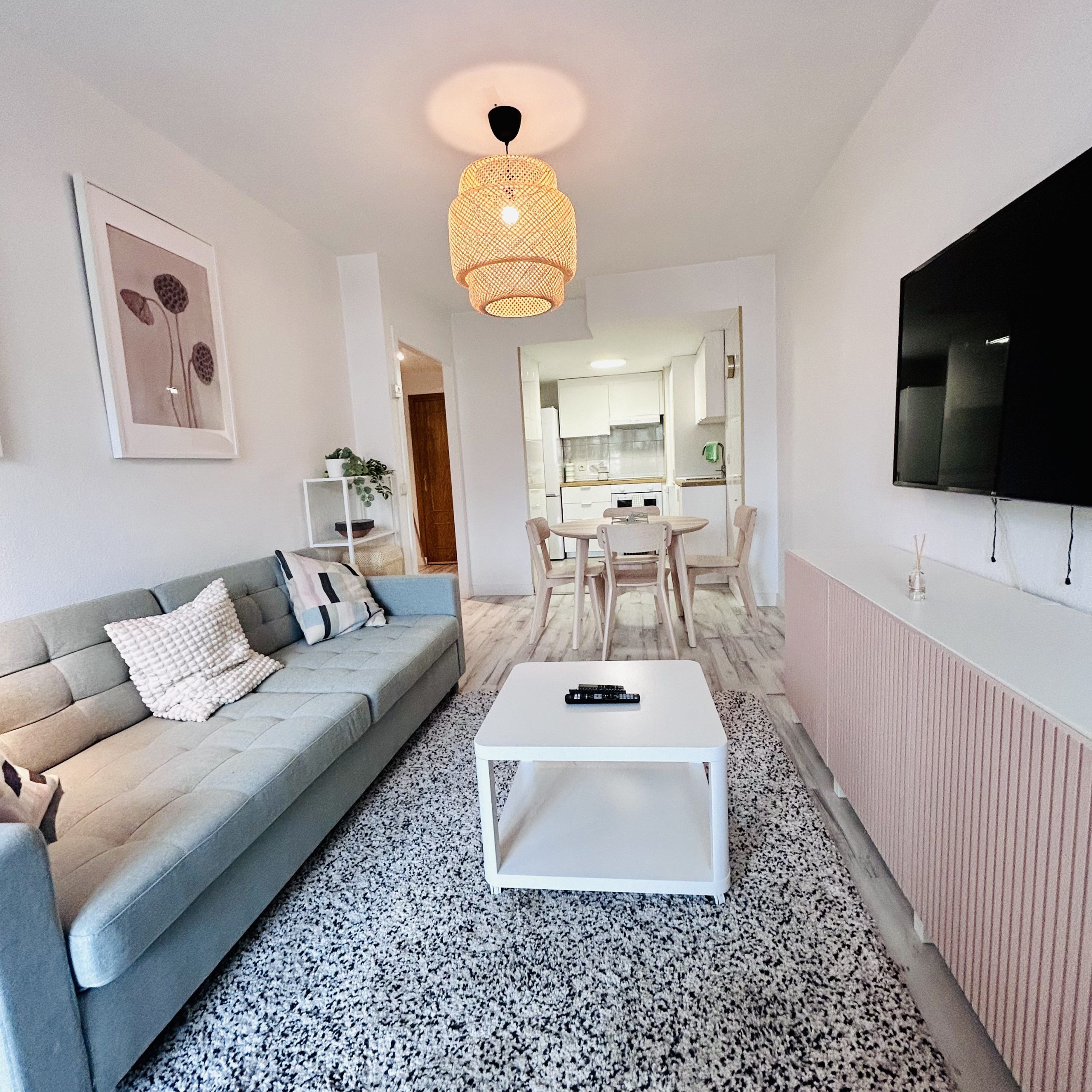Salón con sofá cama-cocina equipada- 1 habitación doble, 1 baño y 1 terraza y ascensor, 60 m2.