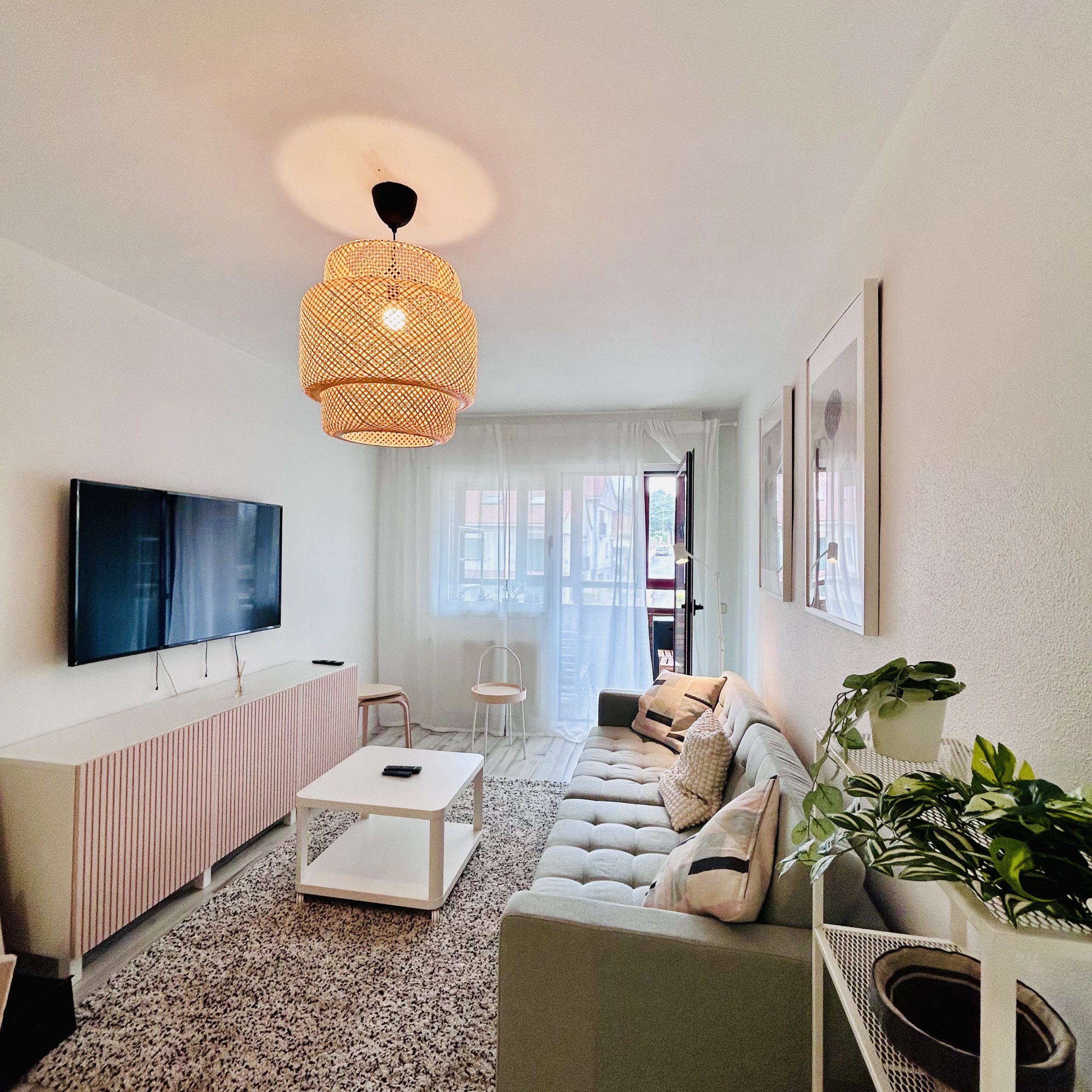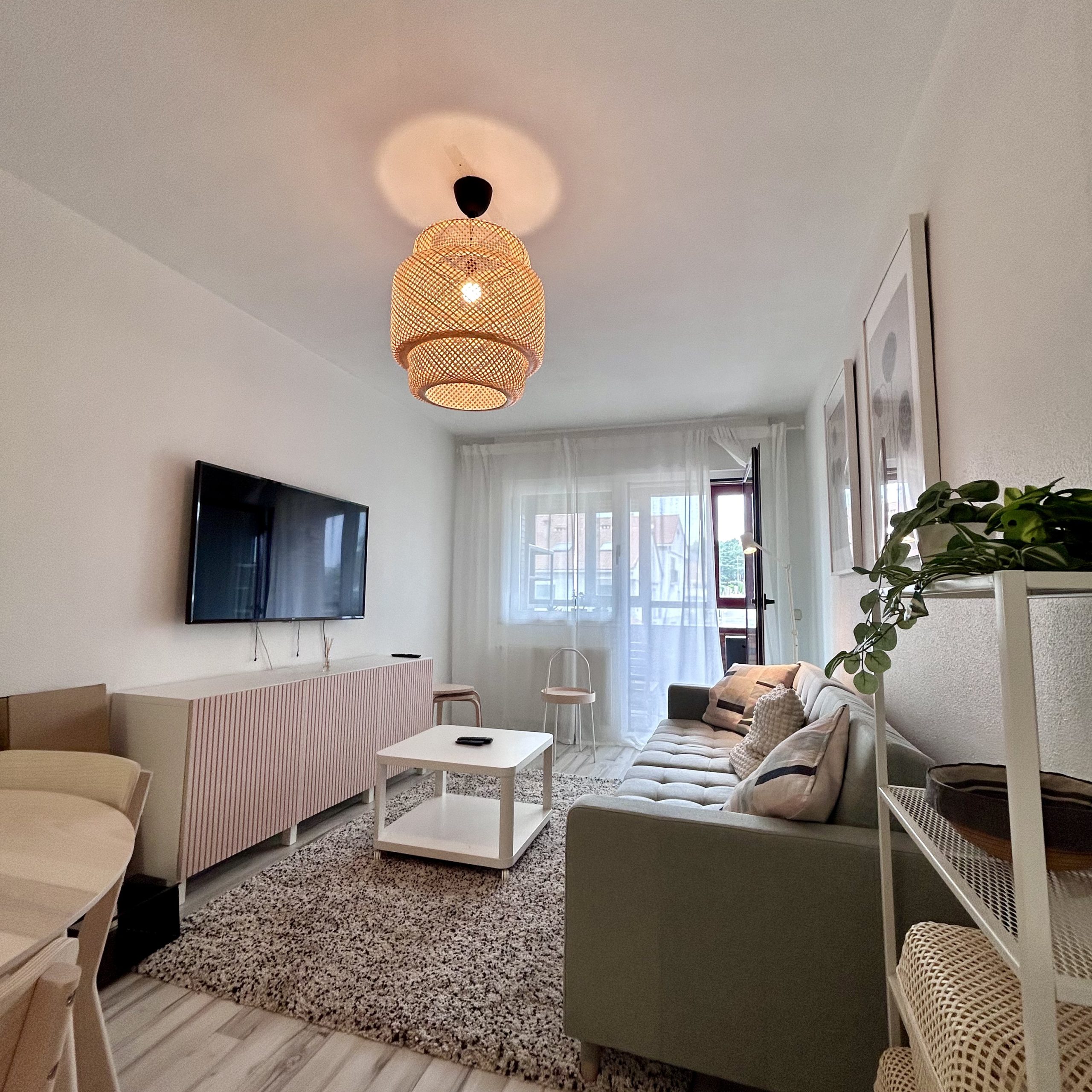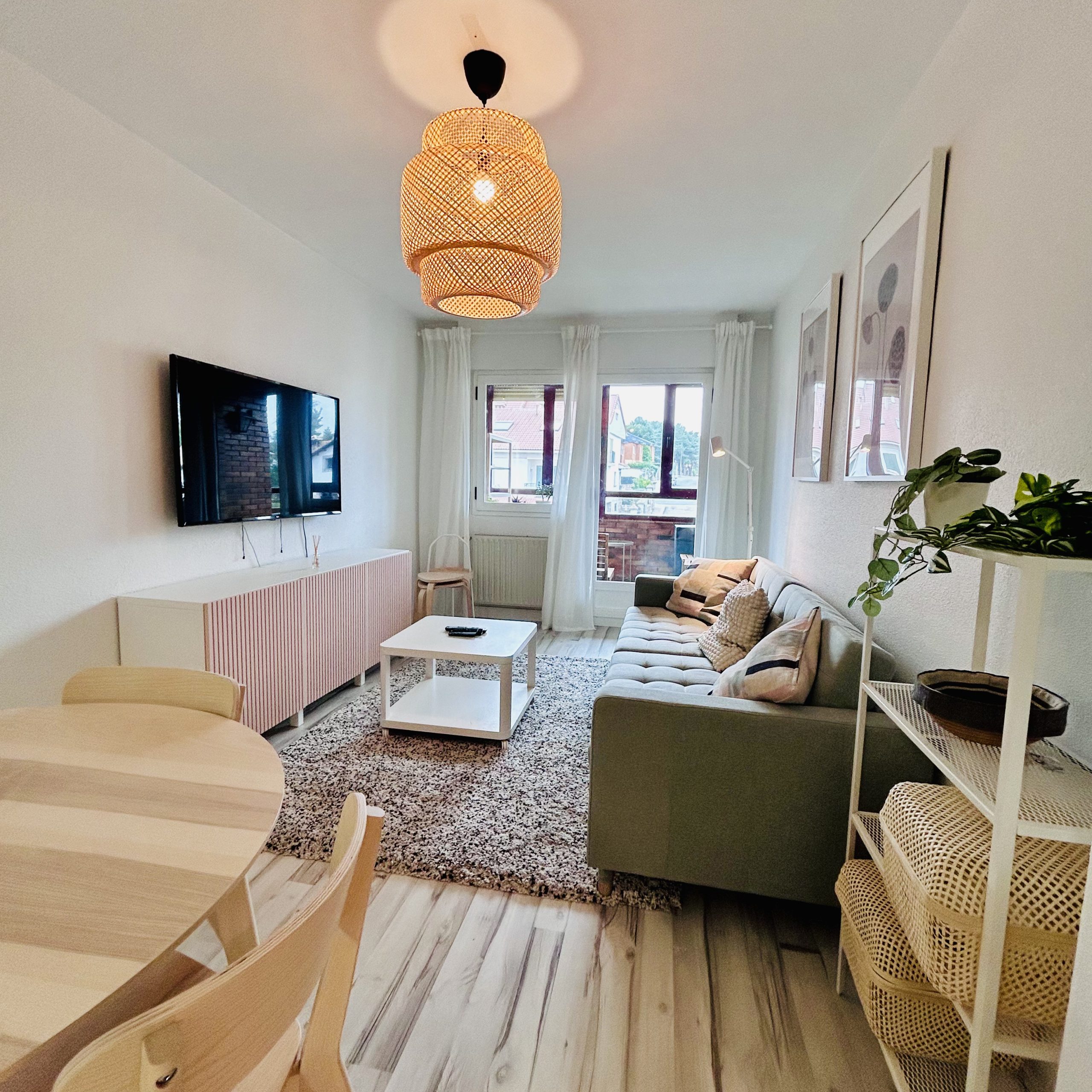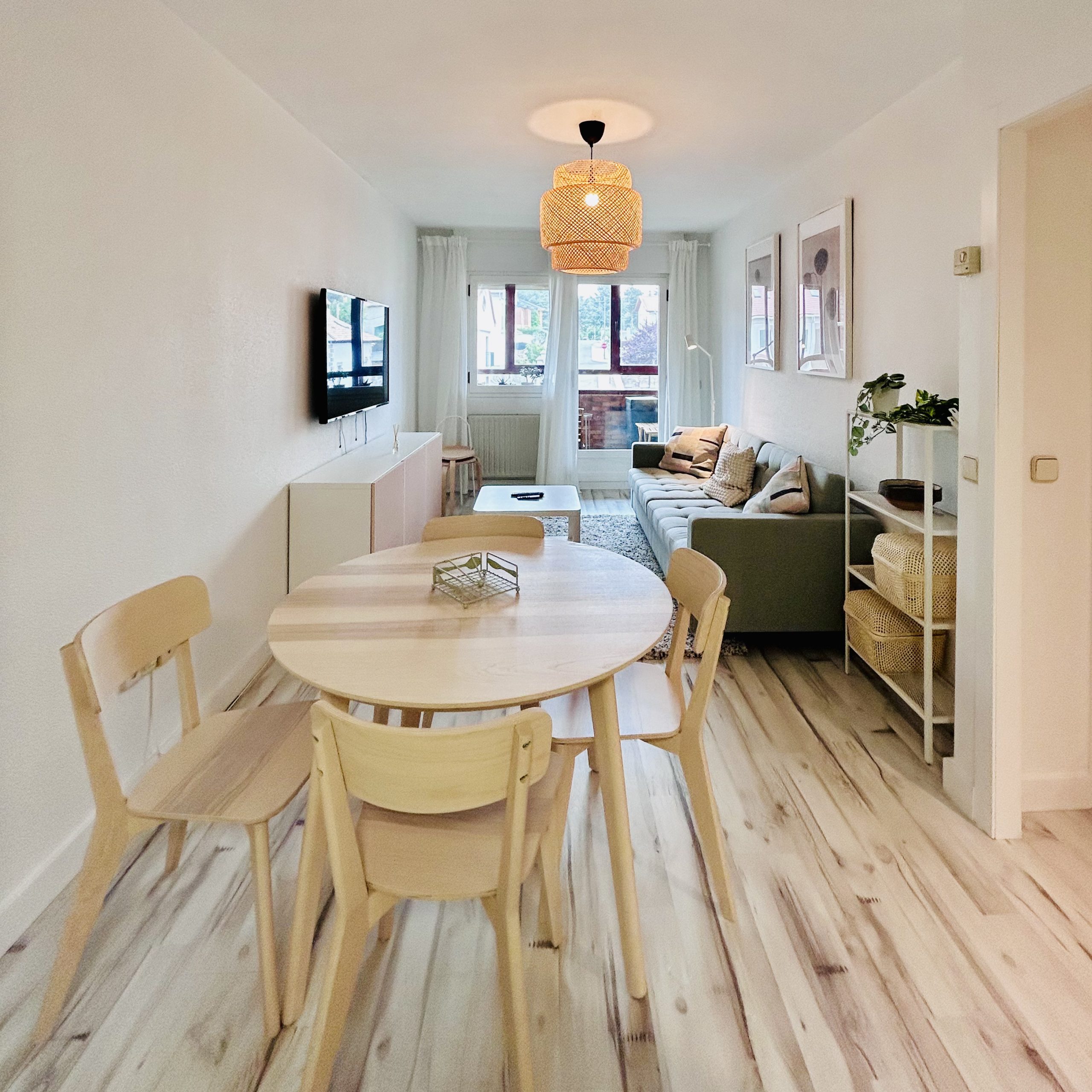 Salón con sofá cama-cocina equipada- 1 habitación doble, 1 baño y 1 terraza y ascensor, 60 m2.